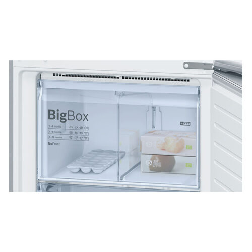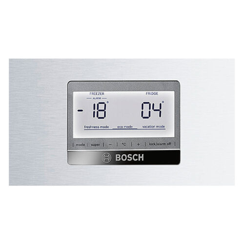 محفظه فریزر در قسمت بالای دستگاه قرار دارد و پنل تنظیمات هم روی در فریزر قرار گرفته است و ارتفاع بالای آن مانع از دسترسی کودکان به این قسمت میشود. دانستن دمای دقیق یخچال برای تازه نگه داشتن مواد غذایی امری ضروری است. یخچال و فریزرهای پیشرفته بوش امکان تنظیم دقیق دما را در هر دو قسمت در اختیار شما قرار می دهند. به دلیل وجود همین قابلیت میتوان دمای داخلی را بر اساس موادی که در داخل آن قرار دارد به سادگی تغییر داد و به شکل مناسبتری از مواد غذایی نگهداری کرد. البته نباید فراموش کرد که هر چه میزان دما پایینتر برده شود در ادامه مصرف انرژی و برق نیز بیشتر خواهد شد.