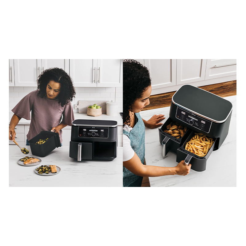 آیا می خواهید در یک کشو بپزید و در کشو دیگر سرخ کنید؟ مشکلی نیست! زمان پخت مرغ سوخاری و سیب زمینی سرخ شده متفاوت است؟ هر دو منطقه پخت و پز را به طور همزمان به پایان میرسانند، بنابراین میتوانید از هر دو غذا با هم لذت ببرید. بدون اینکه از دستگاه های دیگر استفاده کنید یا اینکه تا غذای اصلی شما آماده شود غذای دیگرتان نیز سرد شود!